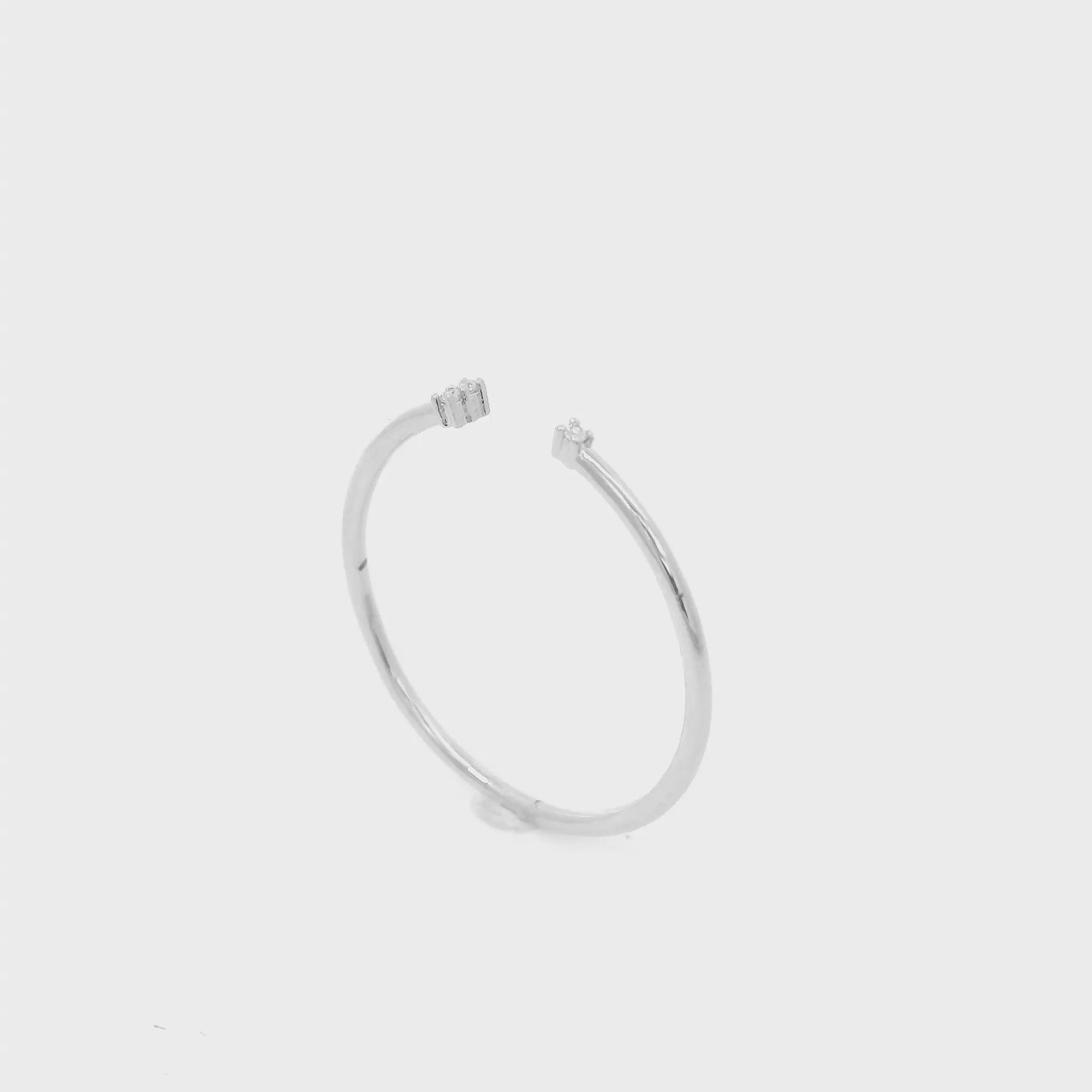 Dicke: offenen, ca. 1,2 mm, 2 unterschiedliche Zirkonia Steinchen klar links und rechts am Ende der Ringschiene im kleinen gefassten Quadrat